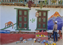 दिक्तेलमा चित्र बनाउँदै ललितकला क्याम्पसका विद्यार्थी