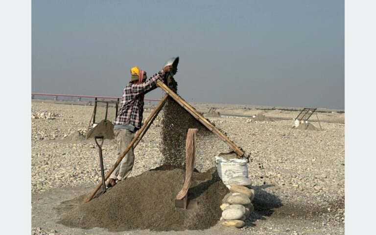 महाकालीको बगरमा बालुवा छानेर जीविका चलाउने दम्पतीहरू