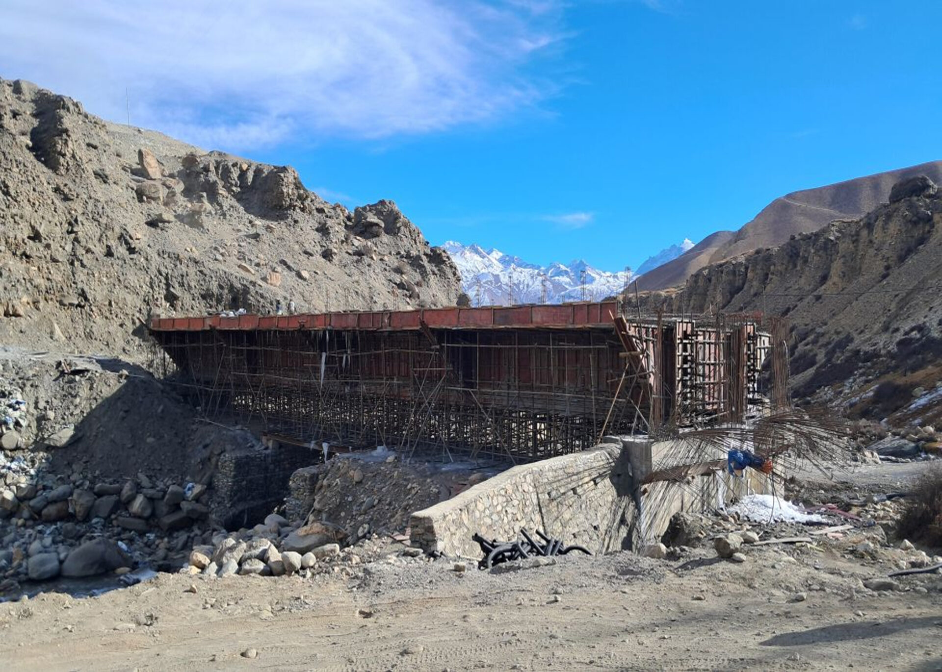 मुस्ताङ । नेपाल–चीनको सीमानाका कोरलानाका जोड्ने माथिल्लो मुस्ताङको लोघेकर दामोदरकुण्ड गाउँपालिका–२ स्थित घमी खोलामा निर्माणाधीन पुल अन्तिम चरणमा पुगेको छ । कालीगण्डकी कोरिडोर (बेनी–जोमसोम–कोरला) सडक आयोजनाले यहाँ निर्माणाधीन घमी खोला पुलको भौतिक प्रगति ८० प्रतिशत पुगेको र चालु आर्थिक वर्षमै सक्नेगरी काम गरिरहेको जनाइएको छ ।