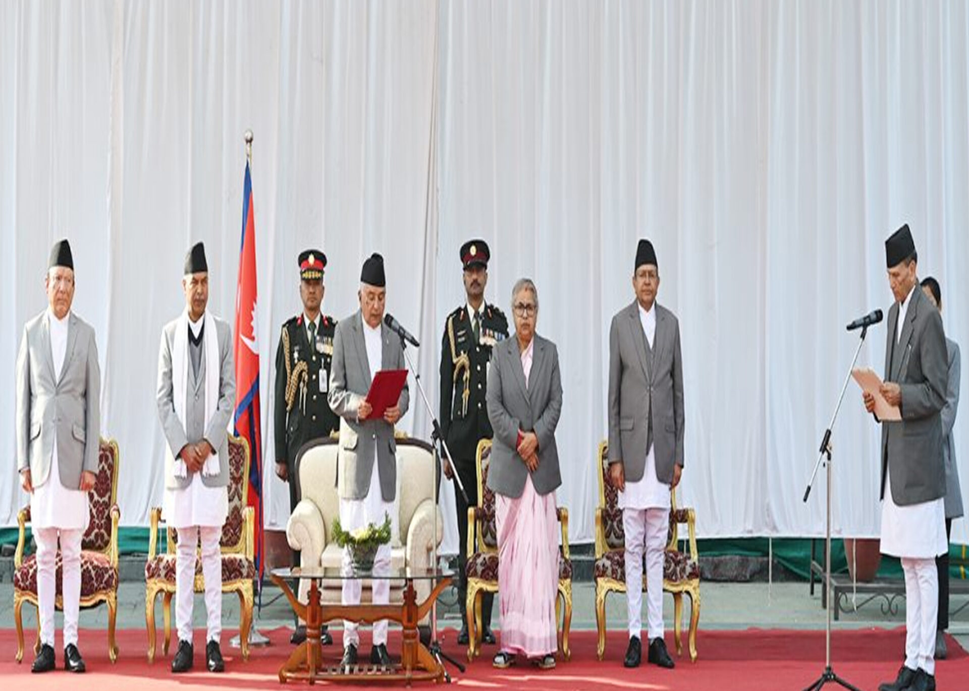 काठमाडौं । नेपाली सेनाका पूर्वरथी बालानन्द शर्माले परराष्ट्रमन्त्री पदमा पद तथा गोपनीयताको शपथ लिएका छन् । आजै मन्त्री नियुक्त भएका शर्माले राष्ट्रपति भवन शितलनिवासमा राष्ट्रपति रामचन्द्र पौडेलसमक्ष पद तथा गोपनीयताको शपथ लिएका हुन् ।